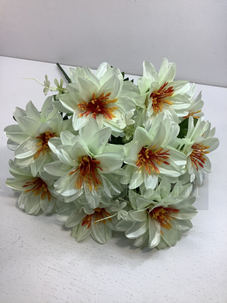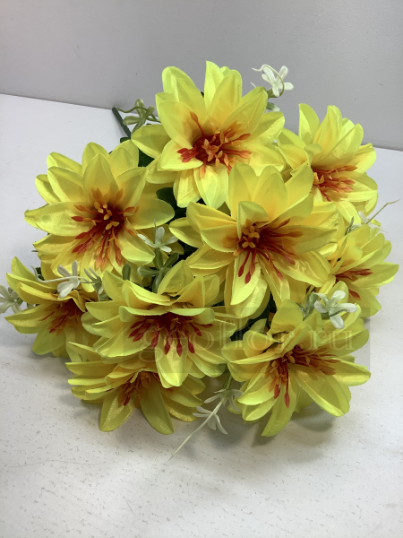 Описание товара: Оптовая максимальная скидка 10% Большая упаковка: 10 шт Маленькая упаковка: 1 шт (одного цвета). В большой упаковке может находиться до 10 расцветок. Высота (h): 59.0 см Диаметр цветка (d): 13.0 см На странице 22 в каталоге Искусственные букеты Вы можете купить Букет георгинов, 11 г или выбрать другие Искусственные цветы в ярких расцветках и с низкой ценой. Букет георгинов, 13 г по цене 149.00 руб, и Букет георгинов, 5 в, 20 г можно выбрать на заказ. Купить по оптовым ценам: Букет роз бутонов с розеткой, 7 г по цене 159.00 руб, и Букет гортензий, 5 в по отличной цене 159.00 руб. с хорошим качеством.