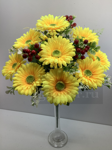 Описание товара: Оптовая максимальная скидка 10% Большая упаковка: 20 шт Маленькая упаковка: 2 шт (одного цвета). В большой упаковке может находиться до 2 расцветок. Высота (h): 58.0 см Диаметр цветка (d): 11.0 см На странице 27 в каталоге Искусственные букеты Вы можете купить Букет гербер с ягодами, 13 в или выбрать другие Искусственные цветы в ярких расцветках и с низкой ценой. Букет хризантем двухцветных, 13 в, 26 г по цене 199.00 руб, и Букет сирени, 18 в можно выбрать на заказ. Купить по оптовым ценам: Букет сакуры, 5 в по цене 199.00 руб, и Букет астр, 7 г по отличной цене 199.00 руб. с хорошим качеством.